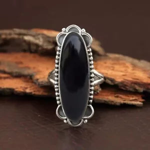 Solid Sterling Silver 925 Handmade Women Ring With Natural Black Onyx Stone